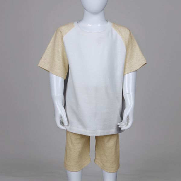 Organic Cotton Family Matching Outfit 190gsm Color Block Raglan Short Sleeves Images |